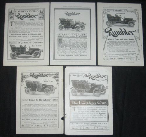 Title (ebay affiliate link): 1900s Antique RAMBLER Touring Car Print Ad Lot 5~Vtg Model 14,15,Surrey Type One
