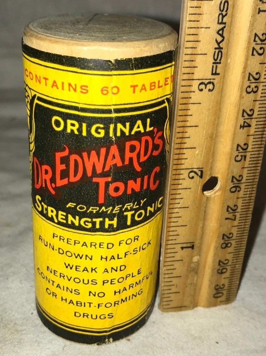 Title (ebay affiliate link): ANTIQUE UNOPENED DR EDWARDS TONIC WOOD TUBE BOX VINTAGE MEDICINE REMEDY DRUGGIST