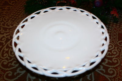 Footed Milk Glass Cake Stand Plate pedestal serving SEE