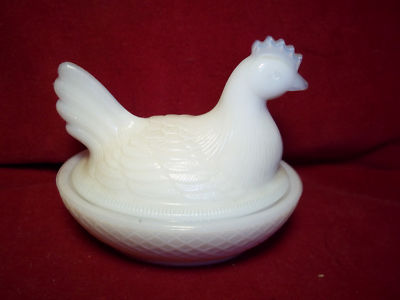 ULTRA MINI CHICKEN ON A DIAMOND BASE - MILK GLASS