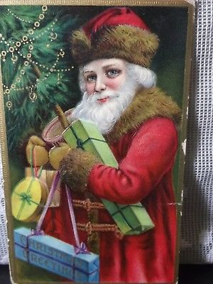 Title (ebay affiliate link): Vintage Embossed Christmas Postcard-Santa Claus,Brown Fur,Tree,Gold Trim,Germany