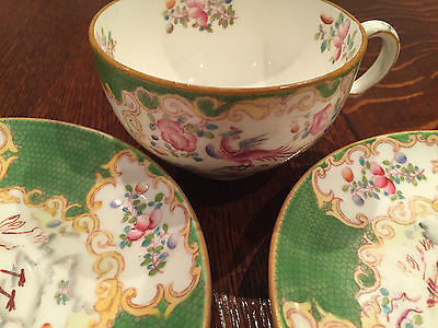 Antique Mintons floral swags porcelain 1 teacup & 2 SAUCERSbird pattern England