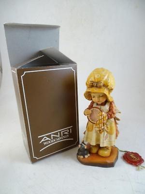 Vintage Hand Carved Wood Statue Figurine Girl Dishes Anri Italy 6"T 1669/2000