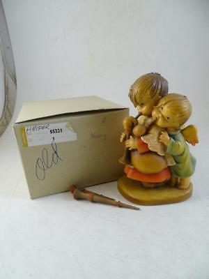 Vintage Hand Carved Wood Statue Figurine Angels Bagpipes Anri Italy 6" Tall OLD