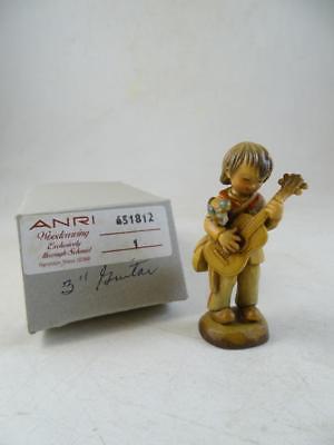 Vintage Hand Carved Wood Statue Figurine Boy Guitar Ferrandiz 3" Tall Italy Anri