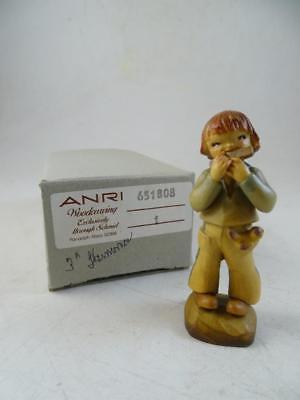Vintage Hand Carved Wood Statue Figurine Boy Harmonica Ferrandiz 3"T Italy Anri