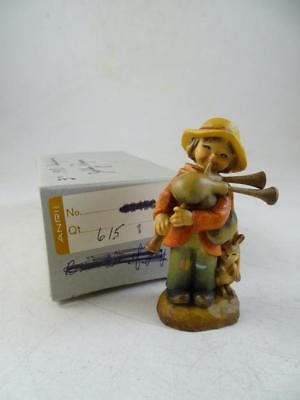 Vintage Hand Carved Wood Statue Figurine Boy Bagpipes Ferrandiz 3"T Italy Anri