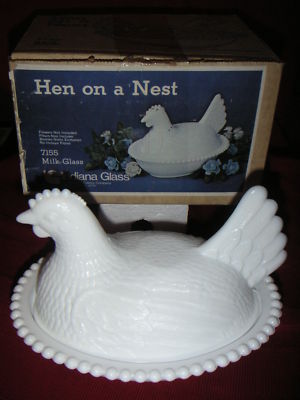 INDIANA MILK GLASS Hen on Nest 1960's No 7155 in Box EX