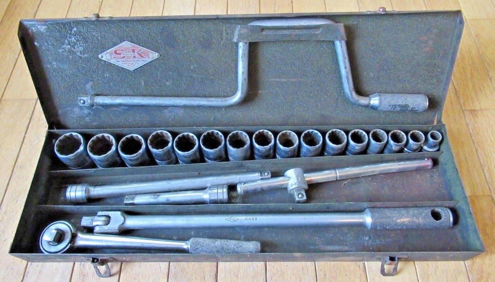 Title (ebay affiliate link): Vintage S-K Sherman Klove Knurled 1/2" Drive Socket / Ratchet Set w/ Box