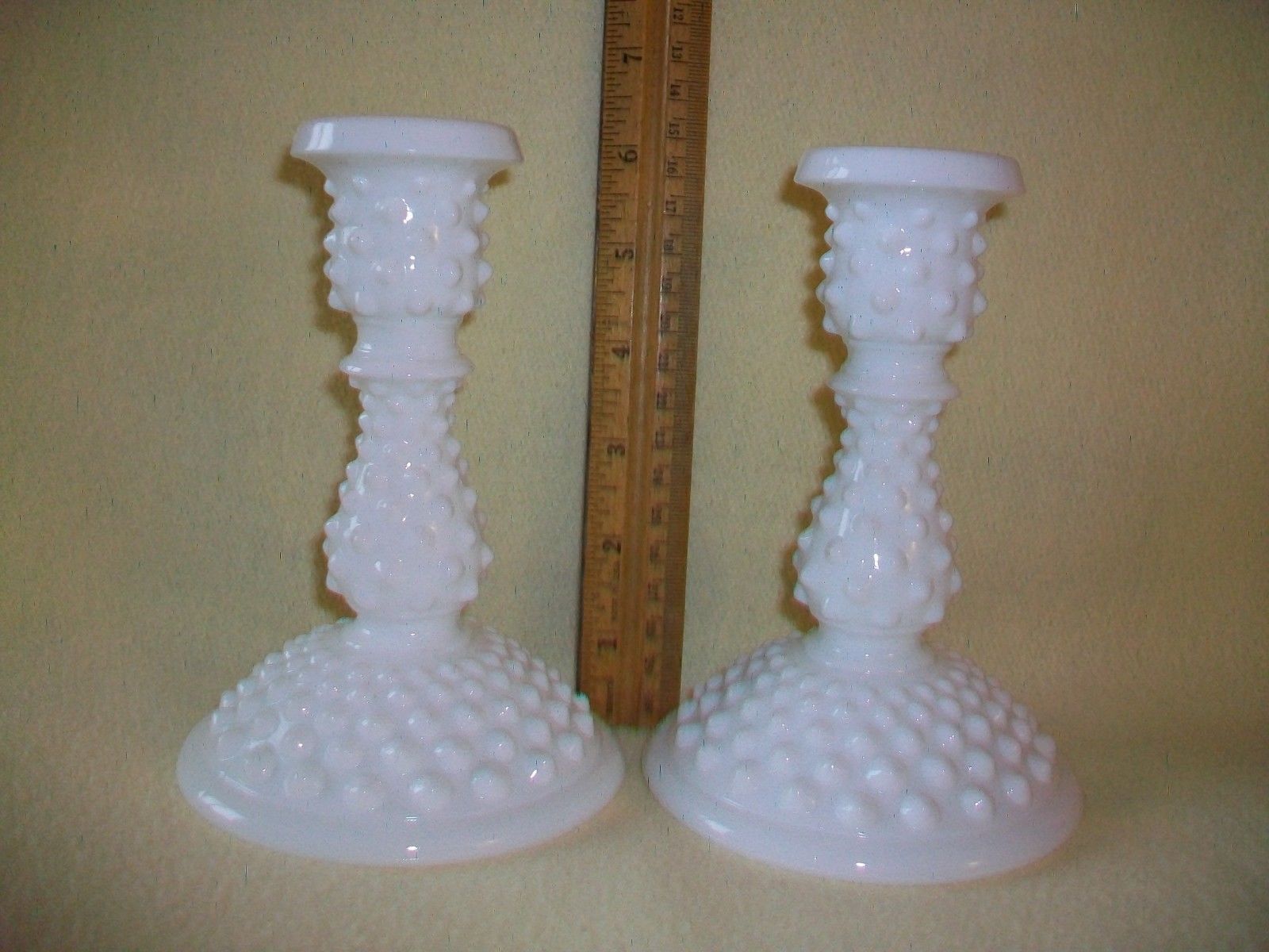 FENTON WHITE MILK GLASS HOBNAIL 6" HIGH CANDLESTICKS EUC!