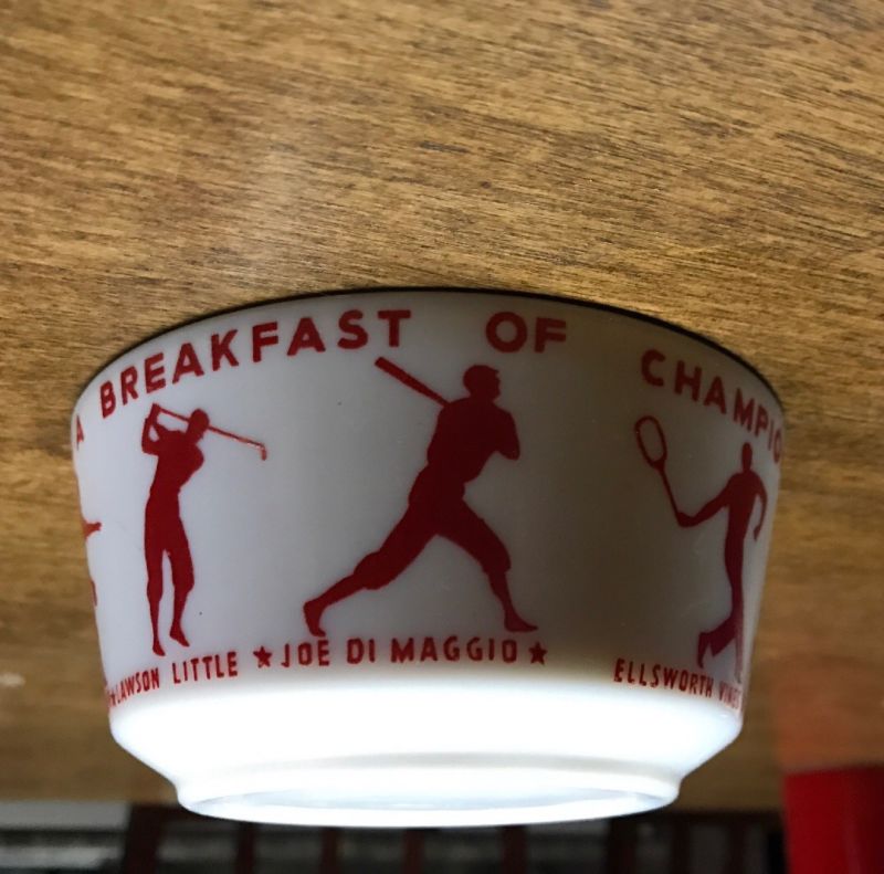 1930''s milk glass Wheaties Breakfast of Champions cereal bowl premium-DiMaggio