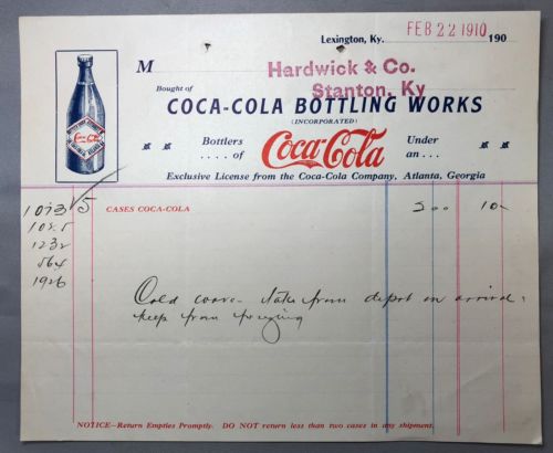 Title (ebay affiliate link): 1910 COCA-COLA Bottling Works Receipt Original Antique Advertising STANTON KY