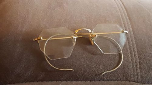 Antique Vintage Spectacles Eyeglasses in Case 10 12K Gold Filled Rims Rimless BF