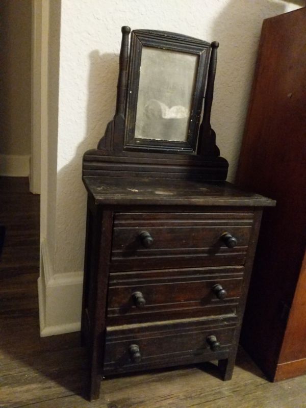 Title (ebay affiliate link): Antique Childs Doll Bureau Dresser with Mirror Victorian Doll Furniture