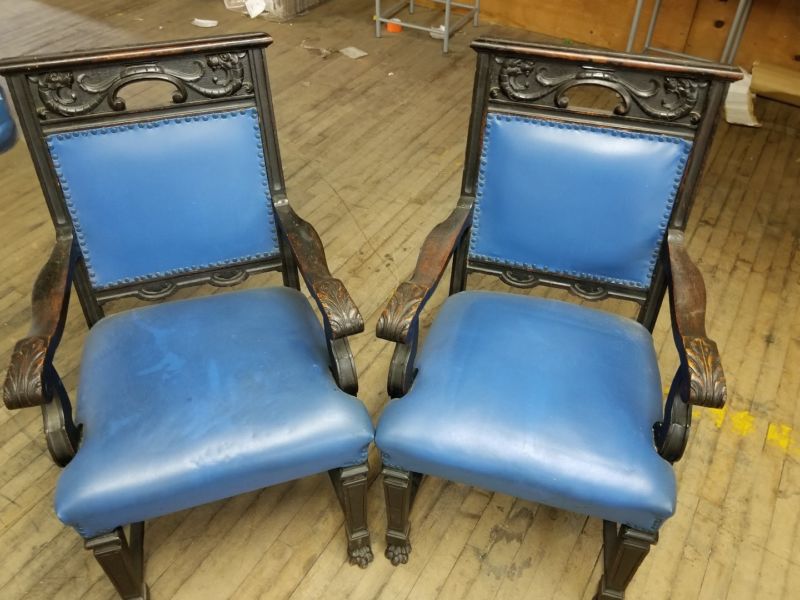 Set of 2 Antique Vintage Wooden Chairs vinyl Cushion