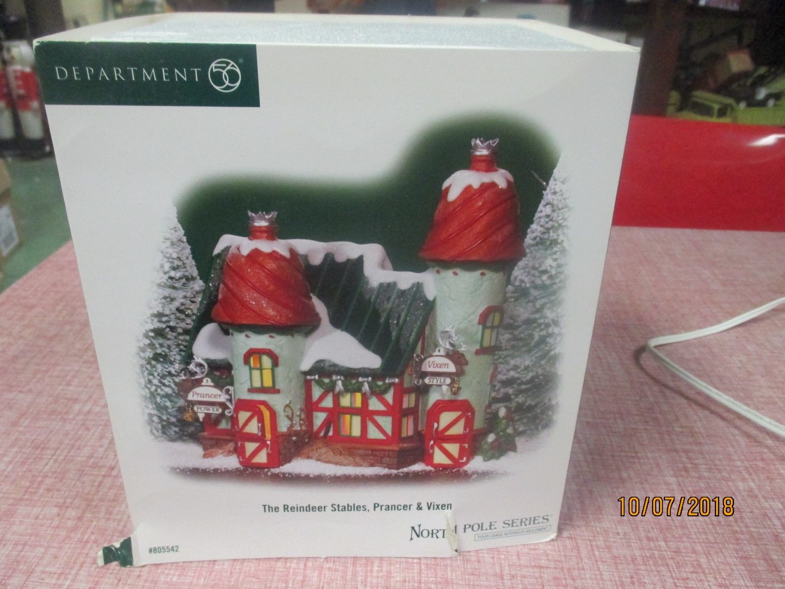Title (ebay affiliate link): Dept 56 North Pole Series Lighted Reindeer Stables Prancer & Vixen