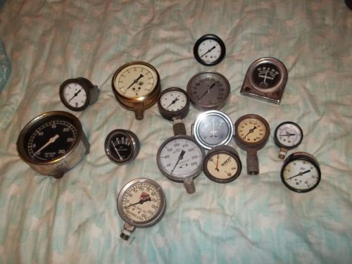 vintage gauge lot brass test,vacuum,amp,pressure etc (15) total