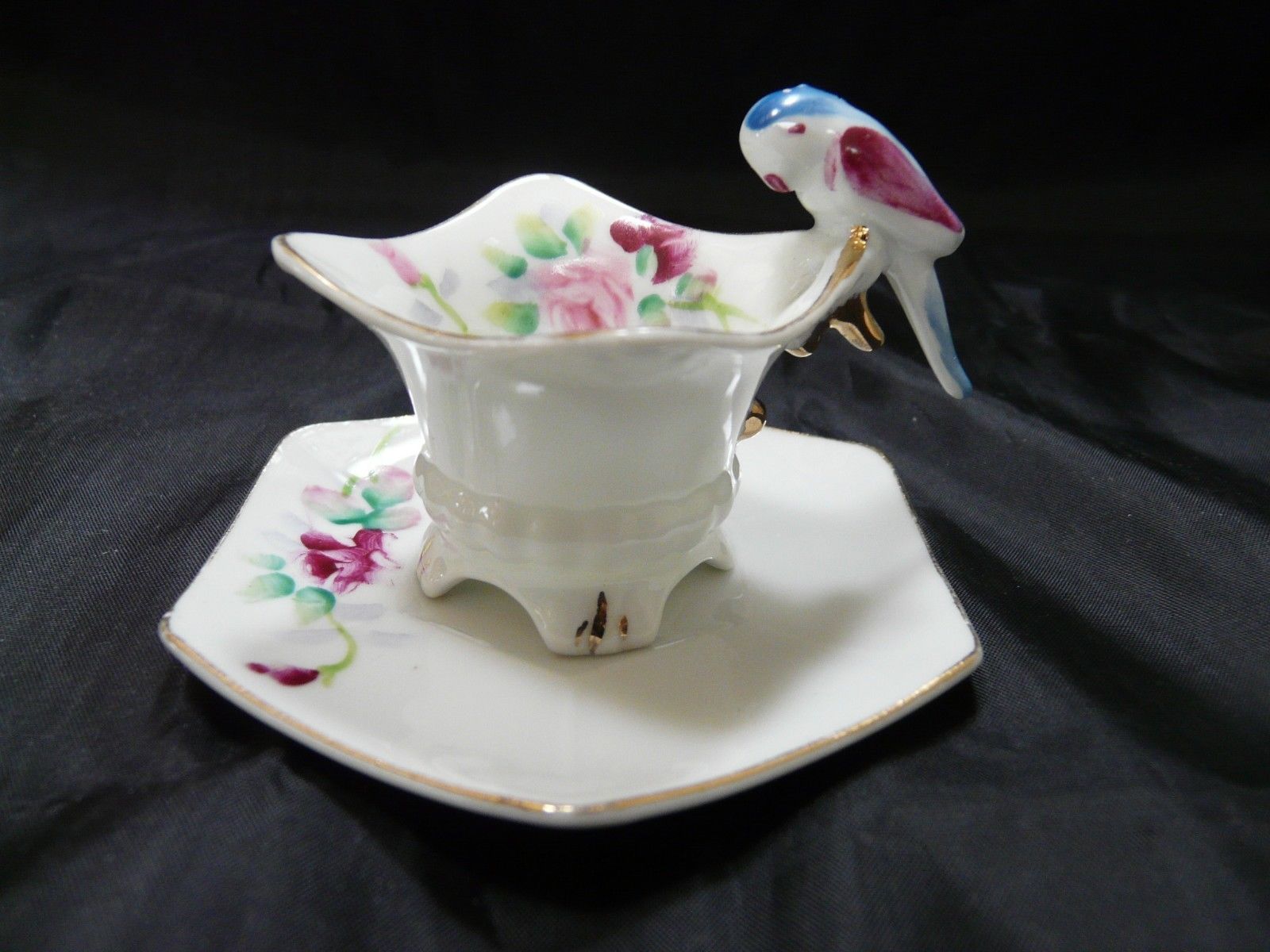Vintage Miniature Parrot Handle Cup & Saucer Meiko China Japan