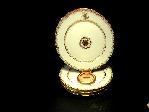 4PC ANTIQUE FRENCH SEVRES MACE BOULEVART DES ITALIENS DINNER PLATE/S C