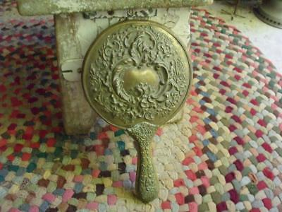 Beautiful Antique Fancy Brass Relief Hand Mirror