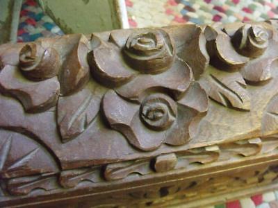 Primitive Vintage Hand Carved Wood Box Lock Box With Carved Flowers