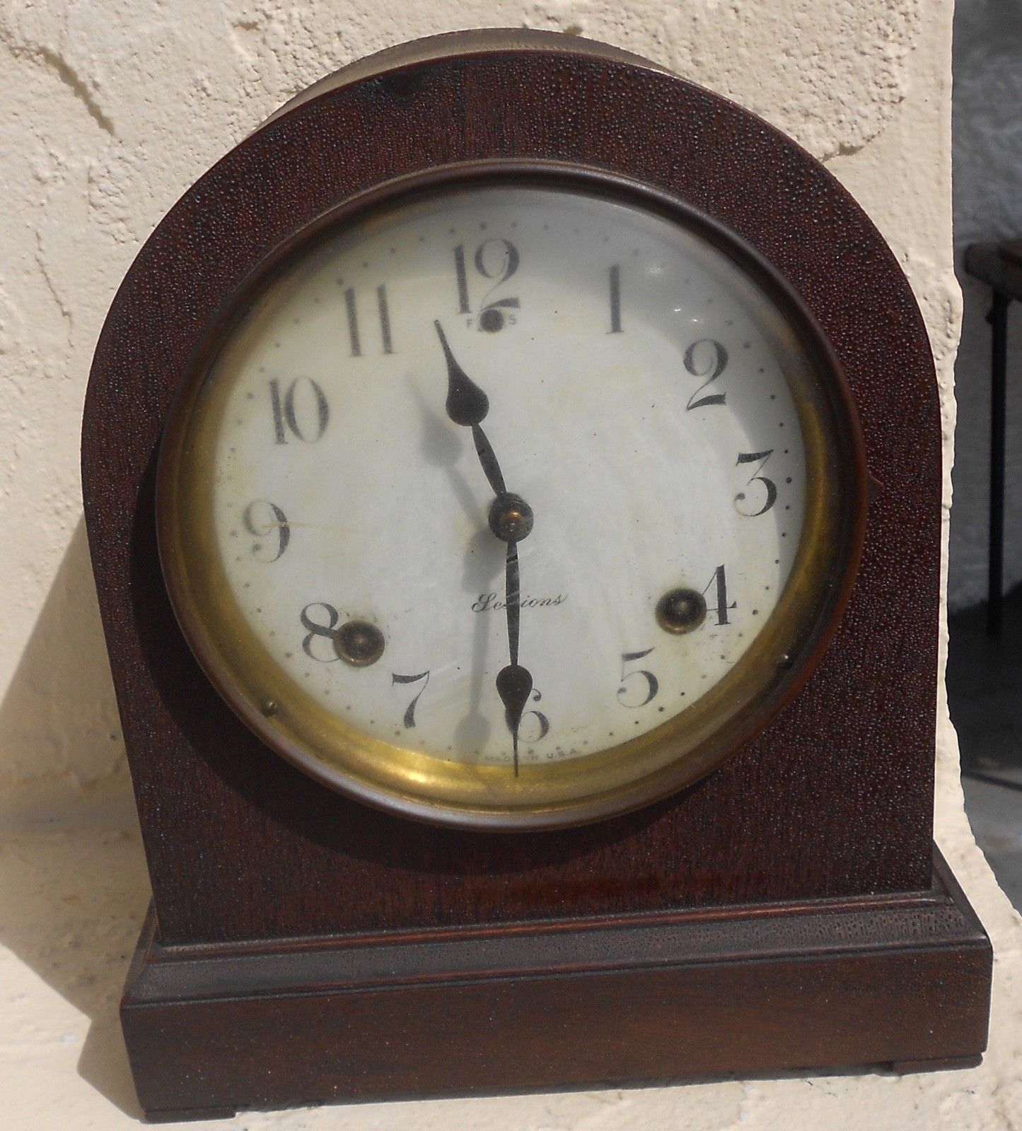 Antique Wooden Sessions Mantel Key Wind Clock Cathedral Shape