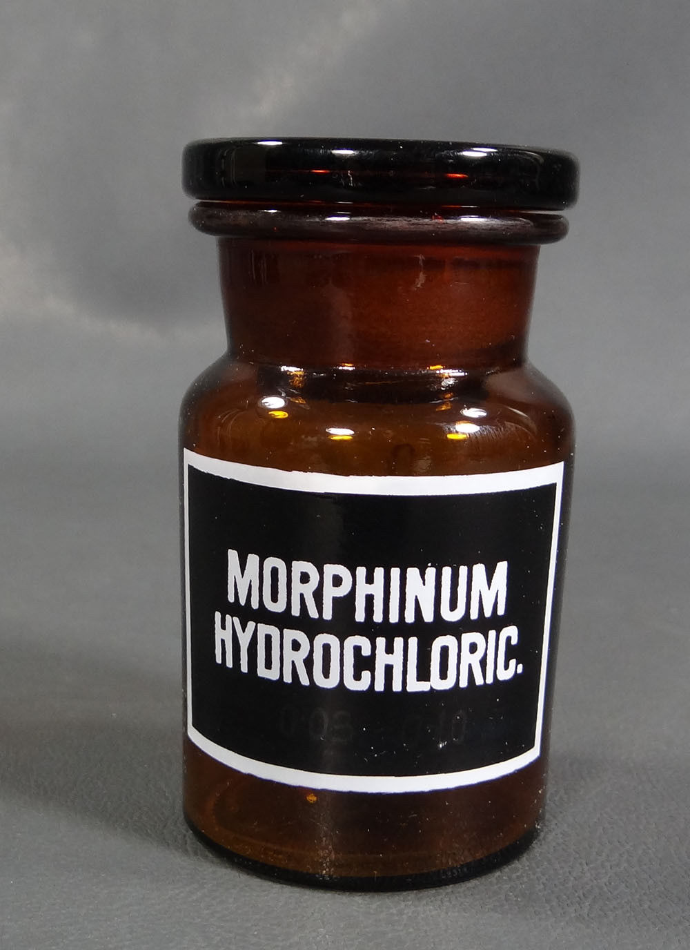 Title (ebay affiliate link): Antique Apothecary Pharmacy Medical Glass Bottle Jar Black Enamel Label Morphine