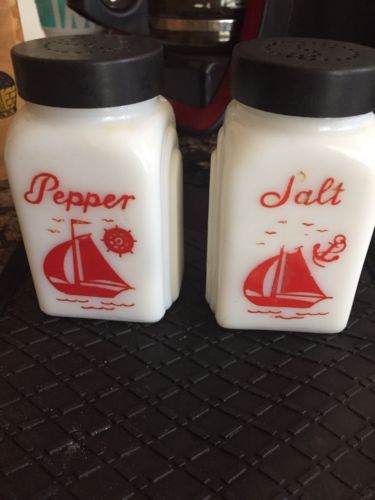 Title (ebay affiliate link): Vintage milk glass salt and pepper shakers with sail boats