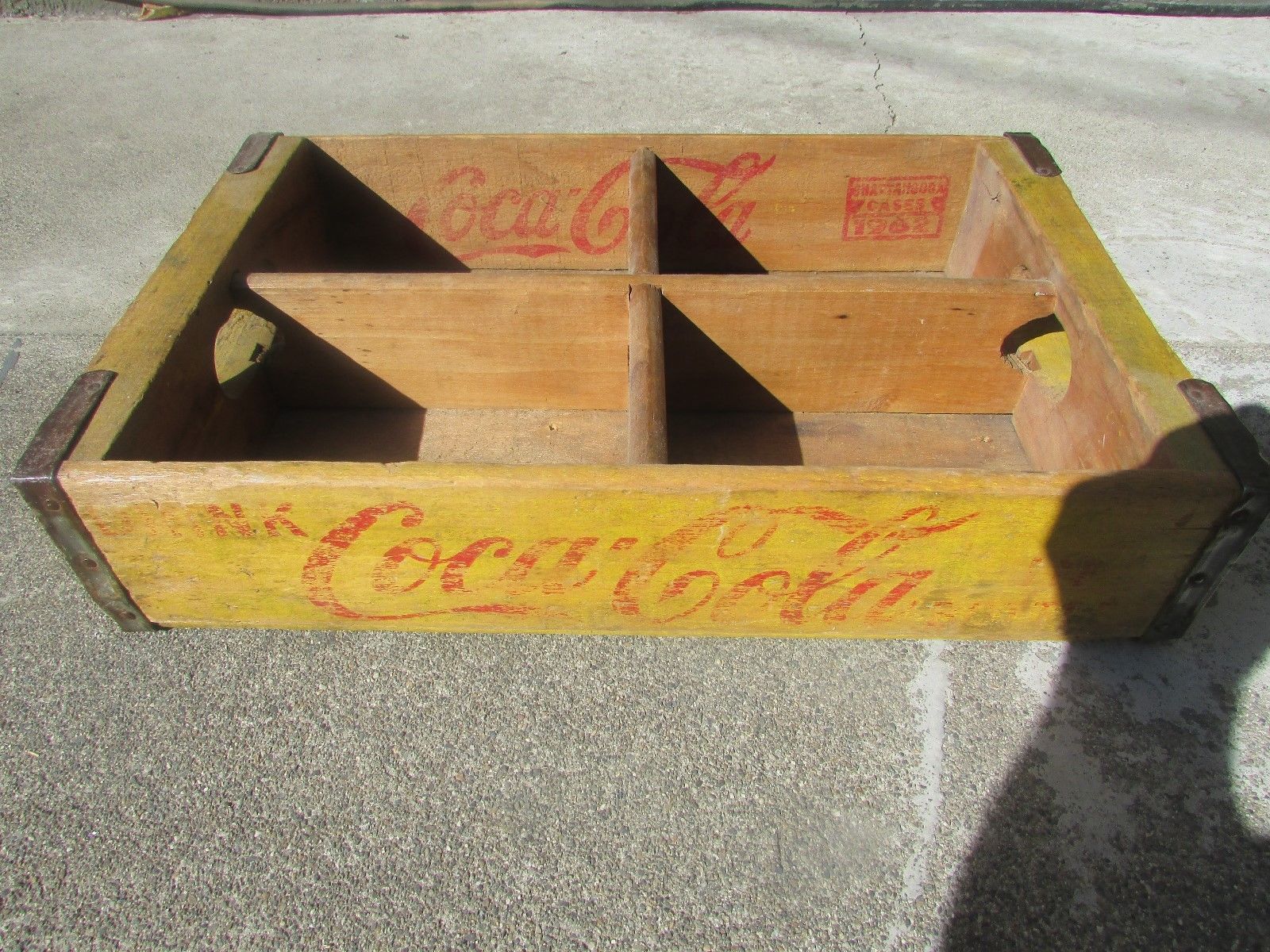 Title (ebay affiliate link): VINTAGE Yellow 1962 Wood 4 slot COCA-COLA Crate Albequrque NM