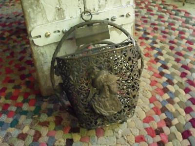 Primitive Antique 1800s Brass Filigree Wall Pocket