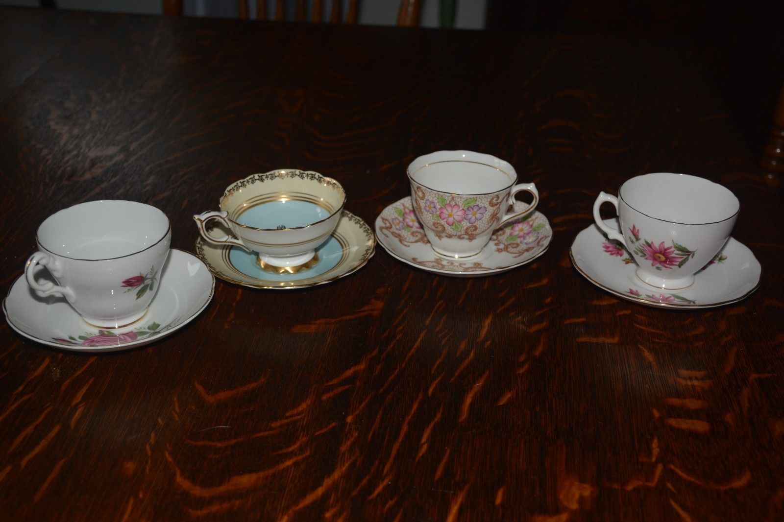 MIXED LOT OF 4 BONE CHINA TEA CUPS & SAUCERS ENGLAND STAFFORD ROYAL
