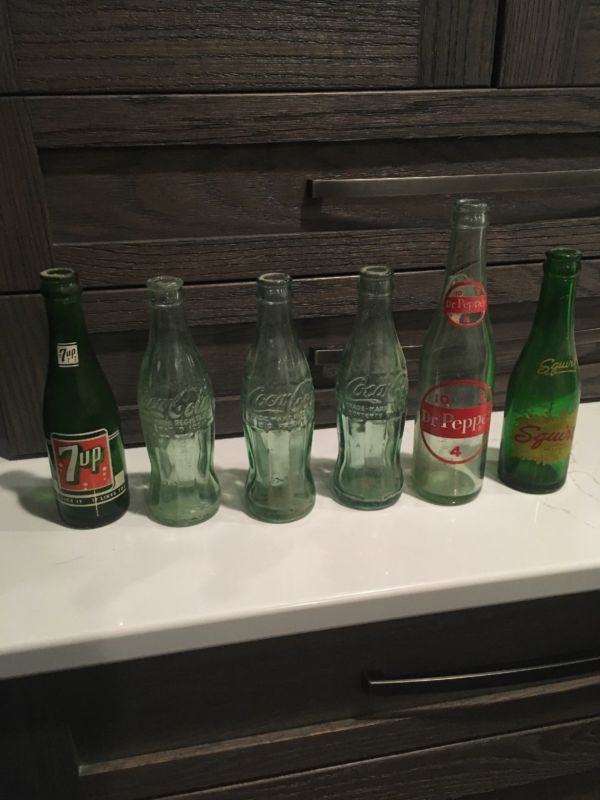 Title (ebay affiliate link): Vintage Old Coca Cola 7up Dr Pepper Squirt Bottle Lot Pop Soda