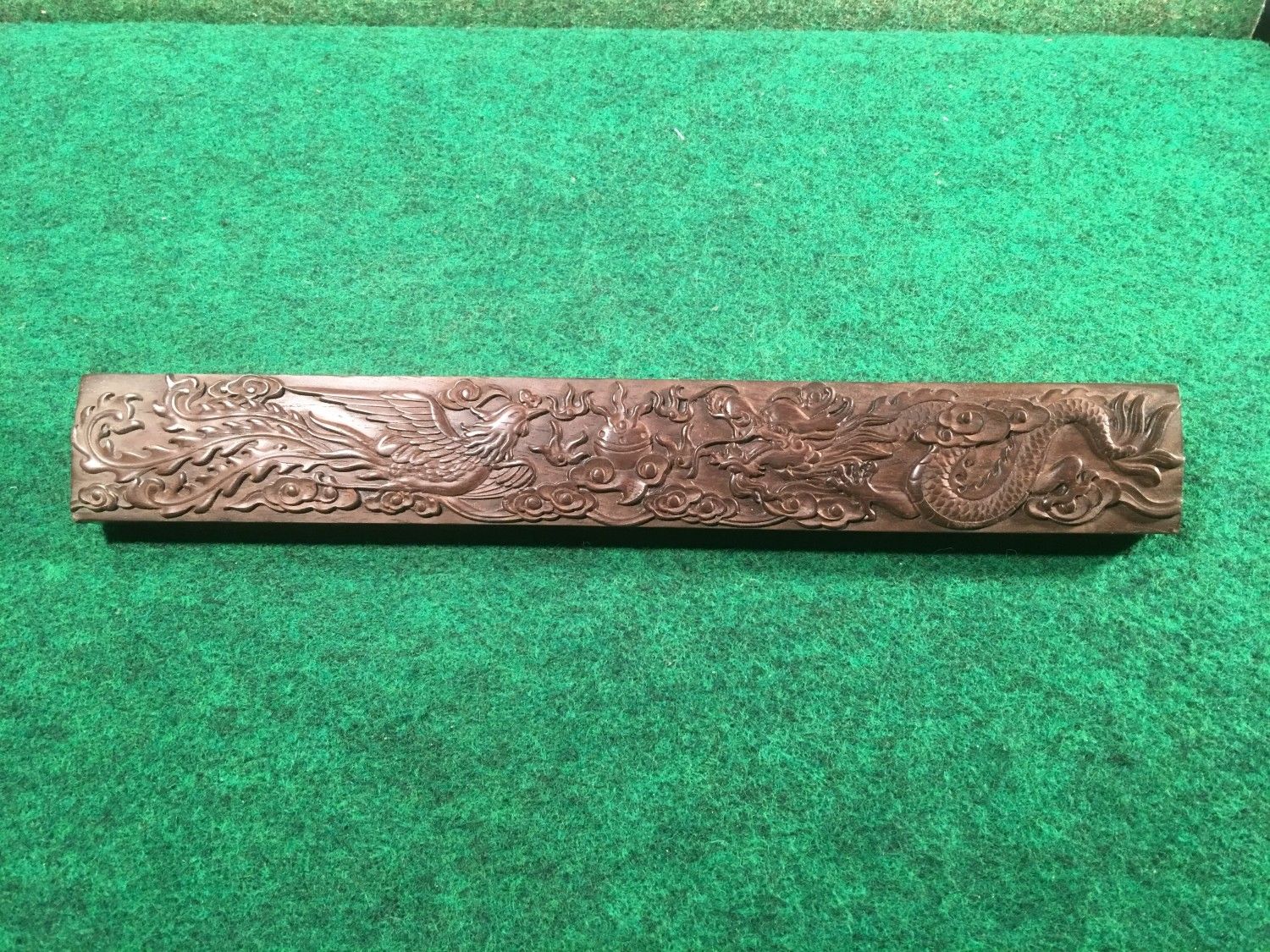Title (ebay affiliate link): Carved Wood Panel Dragon & Phoenix Bird Architectural Wall Hanging PaperWeight O