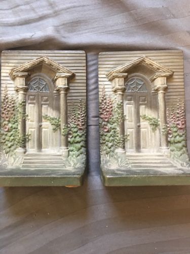 Title (ebay affiliate link): Bradley and hubbard Vintage Art Nouveau bookends house And Flowers Architecture