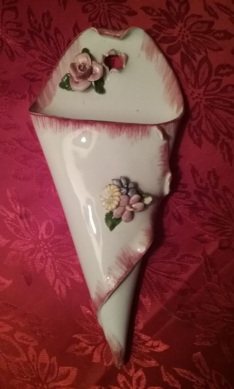 Title (ebay affiliate link): VTG UNIQUE CAPODIMONTE STYLE APPLIED FLOWERS ROSES WALL VASE PLAQUE SIGNED