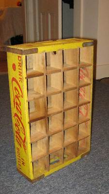 Title (ebay affiliate link): COKE COLA- RARE YELLOW WOODEN BOTTLE CRATE!