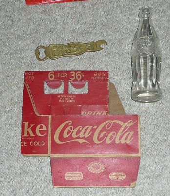Title (ebay affiliate link): Vintage Coke Bottle & Cardboard Case & Brass Opener 6oz