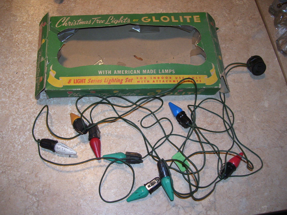 Title (ebay affiliate link): Antique Vintage Glolite C6 Mazda 8 Bulb Christmas Lights Set in Box Working