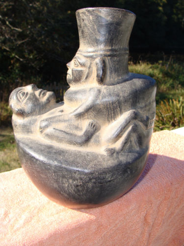 Title (ebay affiliate link): CHIMU Blackware Sexual Pose Pre-Columbian Style Ceramic Pottery Jar Peru 9.5X7in