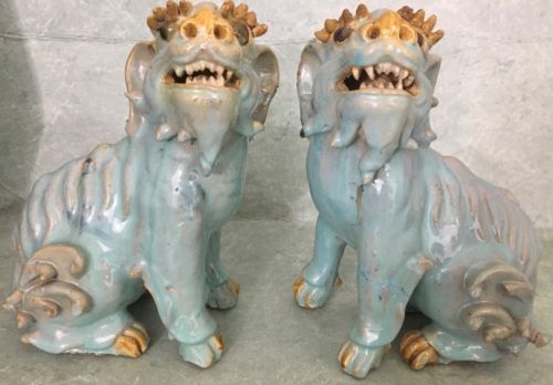 Title (ebay affiliate link): Pr Old Chinese Turquoise Like Porcelain Stoneware Foo Dogs Lions Shi Shi
