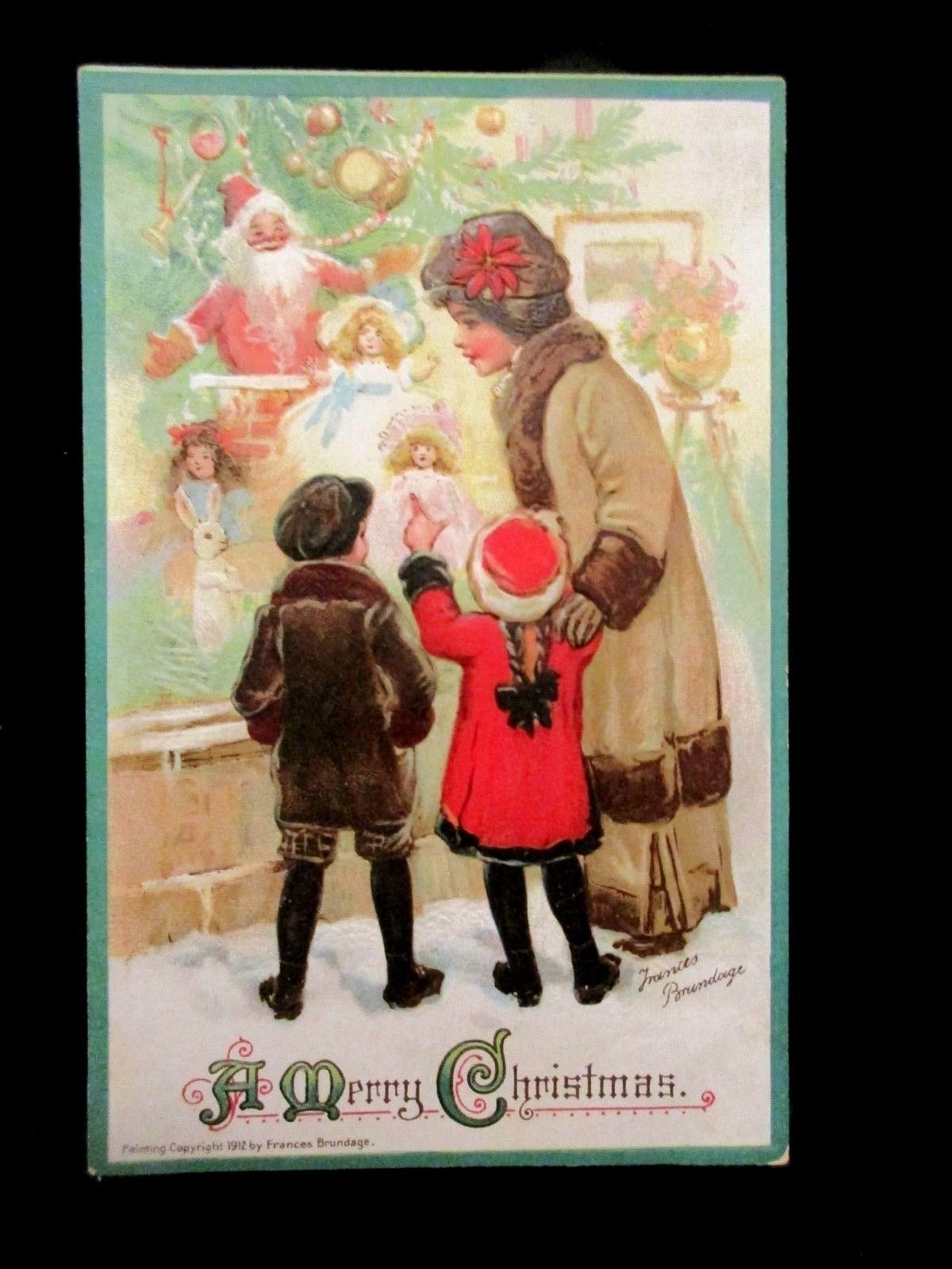 Title (ebay affiliate link): FRANCES BRUNDAGE SIGNED CHRISTMAS POSTCARD SHOP WINDOW 1912 PRINTED GERMANY
