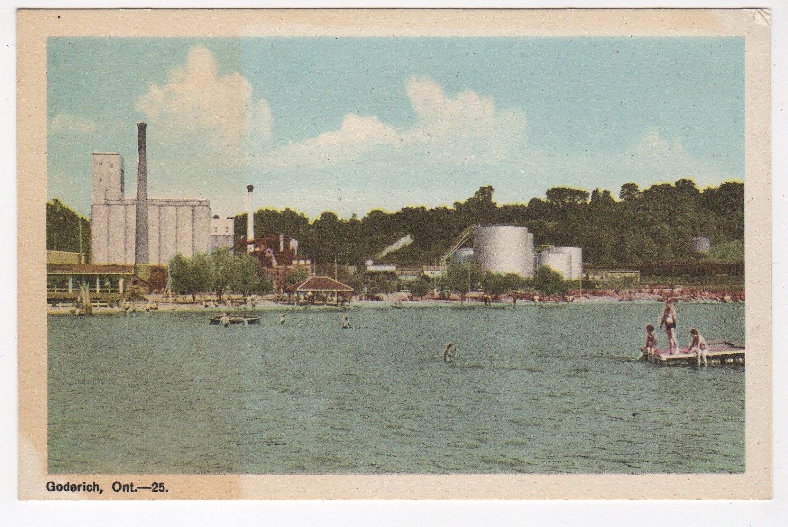GODERICH, Ontario, Canada, Beach, Oil Tanks, Old WB Postcard, Huron County