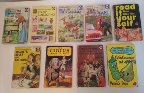 Title (ebay affiliate link): Vintage Ladybird Books Bundle x 9 Colin cucumber stamp collecting snow white