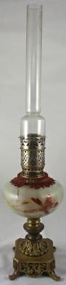 Beautiful Antique Large Glass Oil Lamp With Floral Designs And Glass Chimney