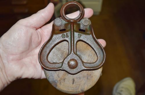 Title (ebay affiliate link): VINTAGE ANTIQUE CAST IRON & WOOD BARN HAY PULLEY PRIMITIVE FARM TOOL SMALL 5.75"