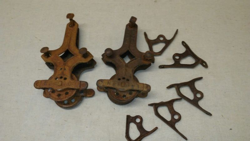 Title (ebay affiliate link): VTG PAIR Cast Iron Louden Wheel Sliding Barn Wood Door Hardware Roller SALVAGE