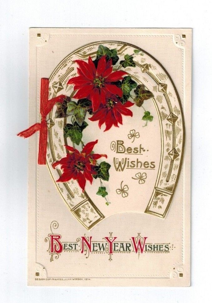 Vintage New Year''s Day Card Postcard John Winsch 1914 Germany Horseshoe