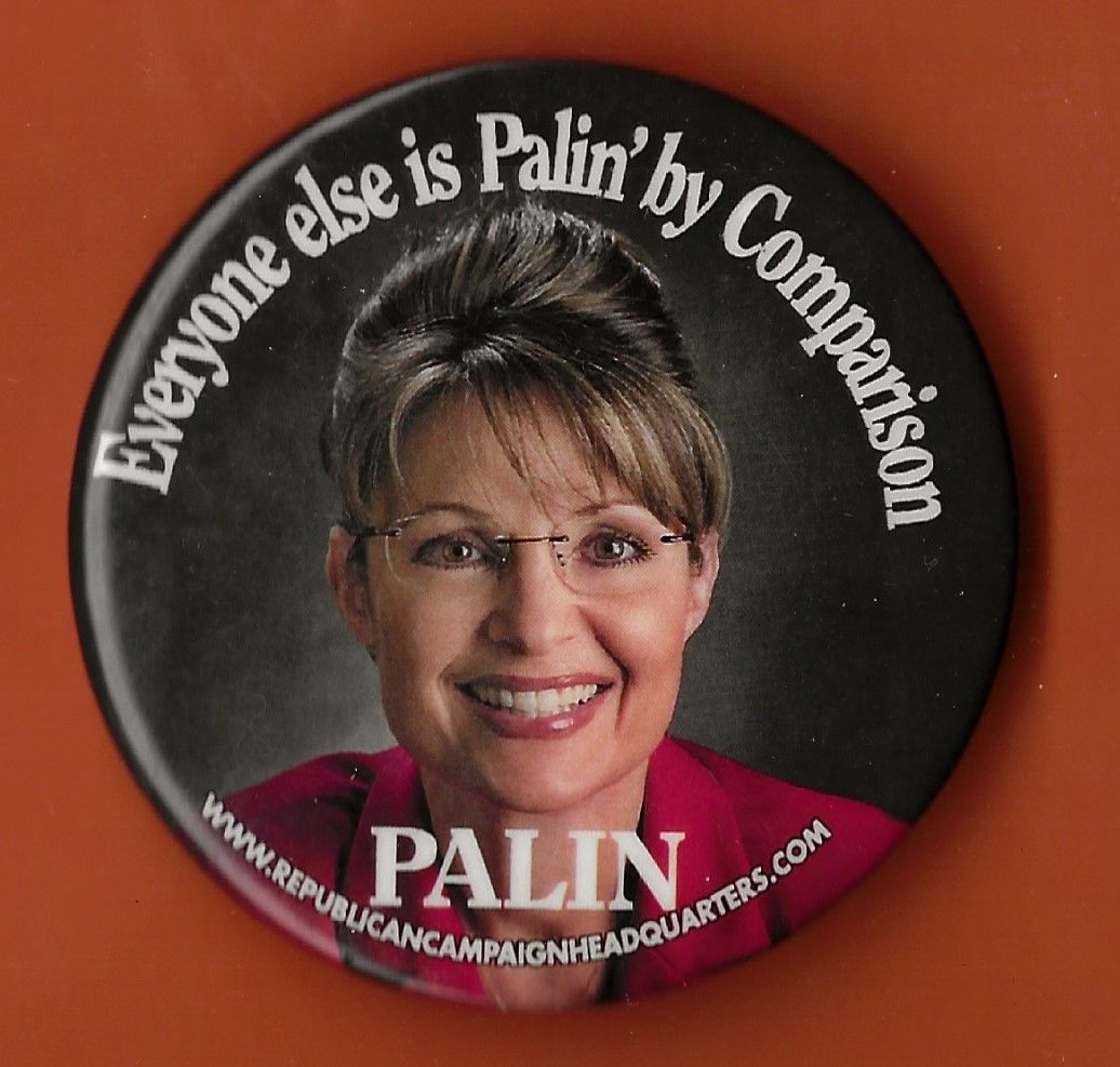 Title (ebay affiliate link): 2008 Sarah Palin 2-1/4"/ "Palin by Comparison "Vice Presidential Campaign Button