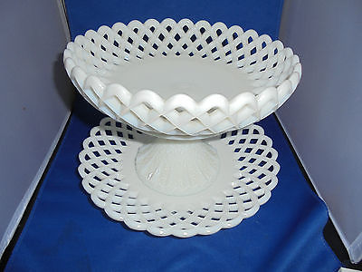Vintage Milk Glass Fruit Bowl, Plate With 11 Glass Fruit Open Lace Quilted Star