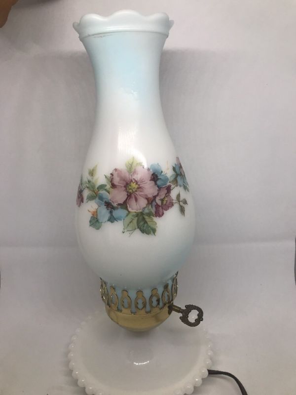 Hurricane Lamp Vintage Electric White Milk Glass Floral Tabletop Bedside Lamp